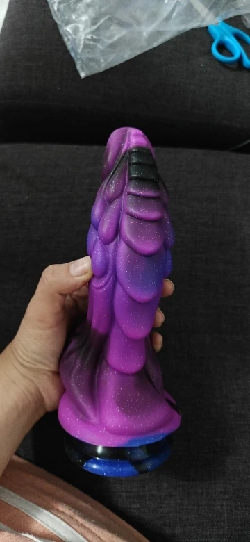 It is the prettiest dildo I have. Don’t scare about scales , they are very gentle with good lubrication. It feels heavy and soft. If you are a man and use previously a vibrator , you are gonna moan with this toy, it touches the prostate very well. Easily it can be my favorite, 100% recommended.